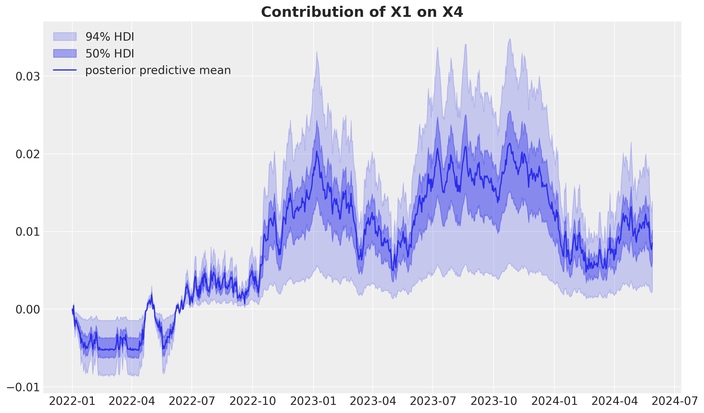 posterior_contribution_x1_zero_over_x4 = second_causal_mmm.sample_posterior_predictive(